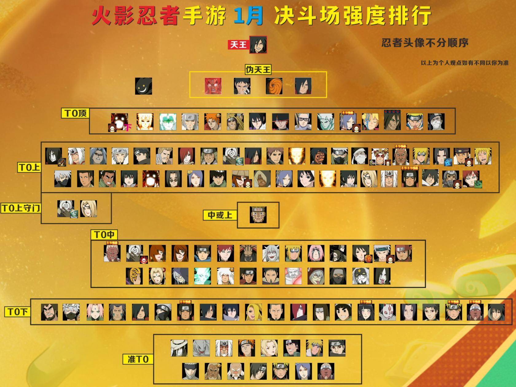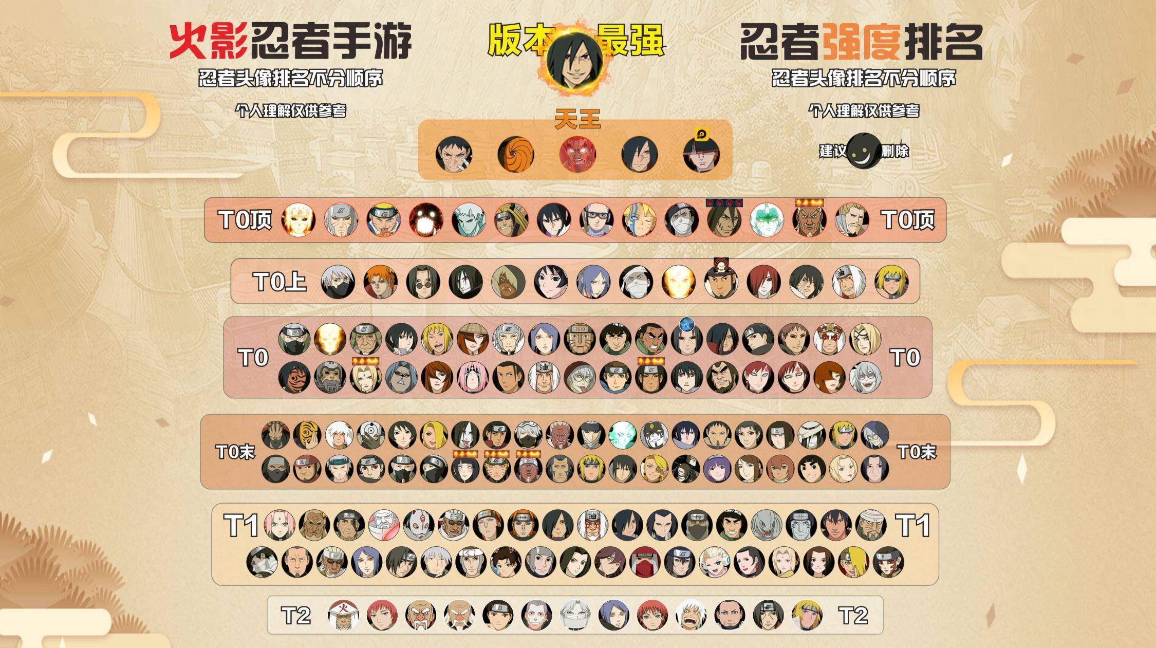 很多人常说火影忍者手游 T0 忍者众多,几十个忍者都有 T0 水准。但要是从上面往下排,T0 是神驹佑将斑,T1 是秽土解斑,T2 是金身水门,这样看起来是不是有点奇怪?