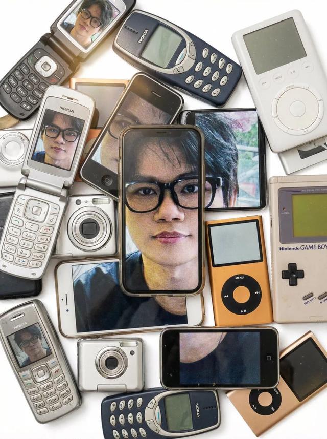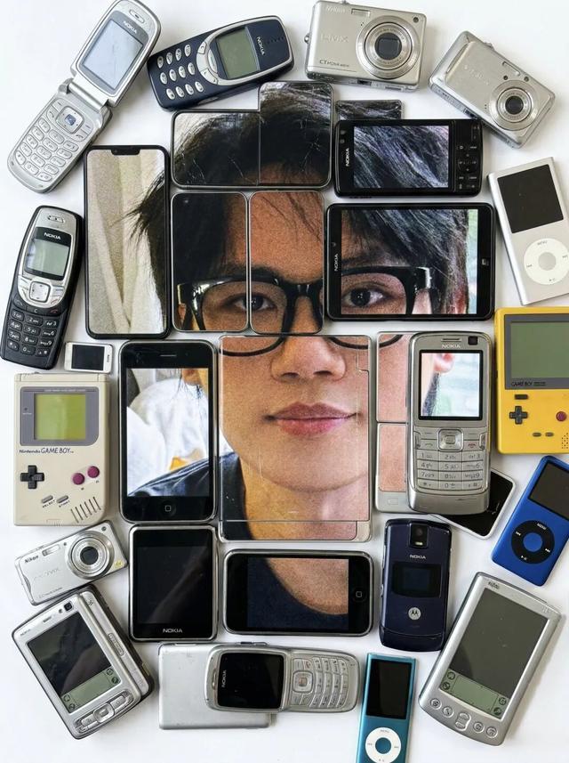 然后再看一张设计感比较强的照片。图片是用各种各样的手机屏幕设备,把我的脸拼接在一起。实际可以看到,Banana 2(右)的执行能力会稍微差一点,首先设备的选择就不太对,有一些屏幕根本就不是正常设备里面的屏幕,而且整个画面的拼接也有点错误。