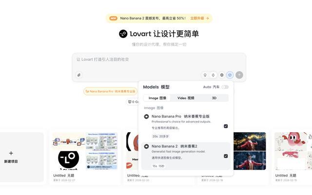 我的年费Lovart第一时间上线了Nano Banana 2,而且Gemini里现在都没有办法主动切换Pro还是2