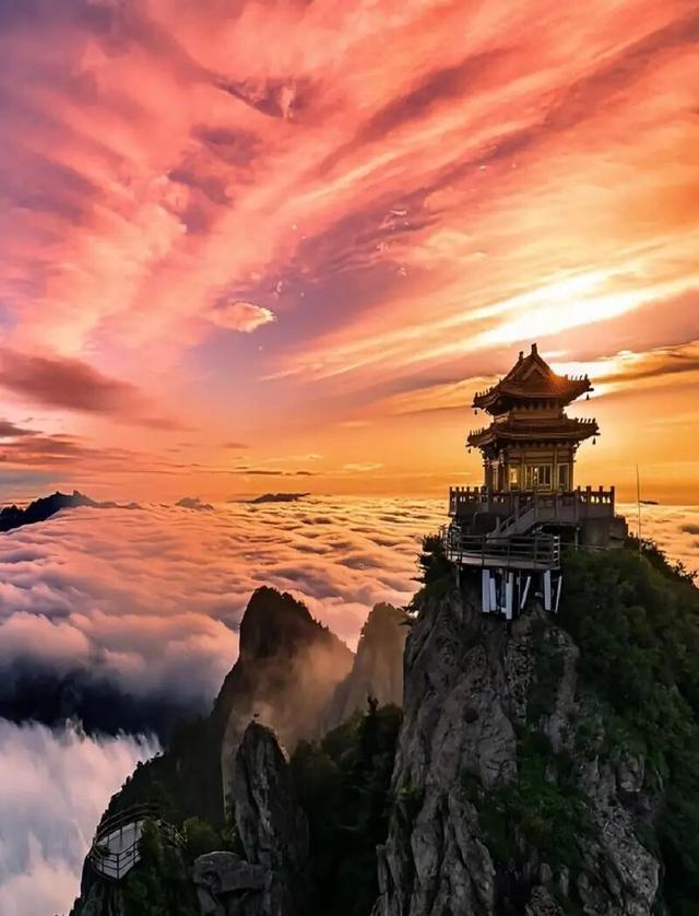 第四件,老君山。它不是“轻松爬一爬”,而是要把体力算进去。站在金顶道观群外沿,云起云落,人的烦恼会暂时没地方放。