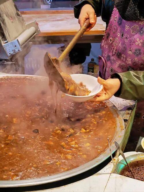 晚饭别找花里胡哨的,本地人更常去的是街边小馆。点一碗不翻汤,汤清但不寡,料不豪横但够实在,喝两口,整个人就松了。想加一口碳水,烙馍卷菜,简单,但很顶。