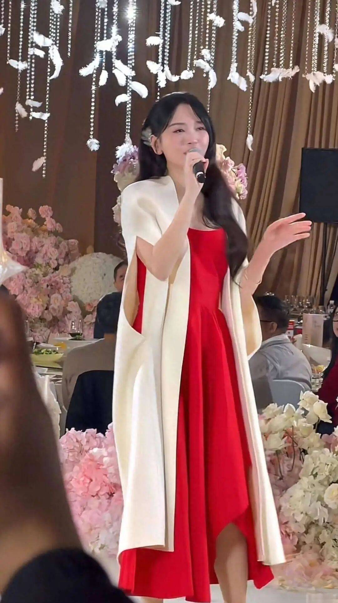 更让人唏嘘的是,在一场江苏如皋的婚礼商演中,金莎身着红色连衣裙、精心打扮登台,卖力演唱《星月神话》《被风吹过的夏天》等经典曲目,出场费高达35万元,可台下的宾客却全程只顾剥龙虾、推杯换盏,几乎没人抬头关注她的表演,碗筷碰撞声几乎盖过了她的歌声,她全程互动无人回应,唱完后只能默默鞠躬离场,身影格外落寞。此外,金莎的商演还有一个固定“套路”,每场几乎都会演唱《星月神话》《被风吹过的夏天》《爱的魔法》这三首老歌,这也让部分网友吐槽她“消费情怀”“江郎才尽”,认为昔日的国民女神如今“落魄到靠吃老本走穴”。